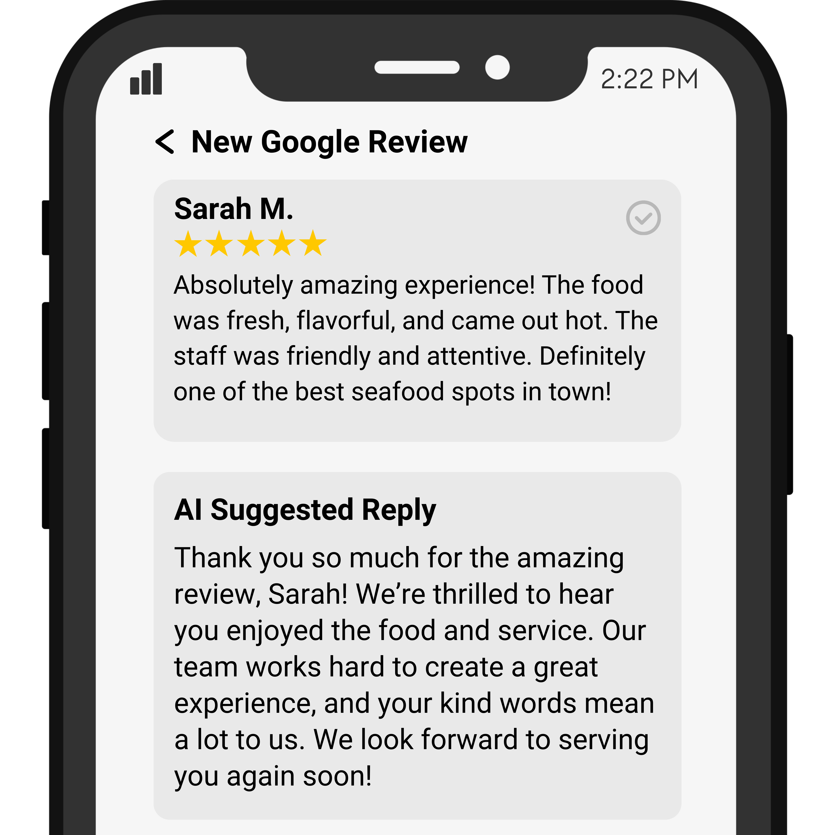 Instantly reply to comments, inbox messages, emails, and Google reviews within 60 seconds